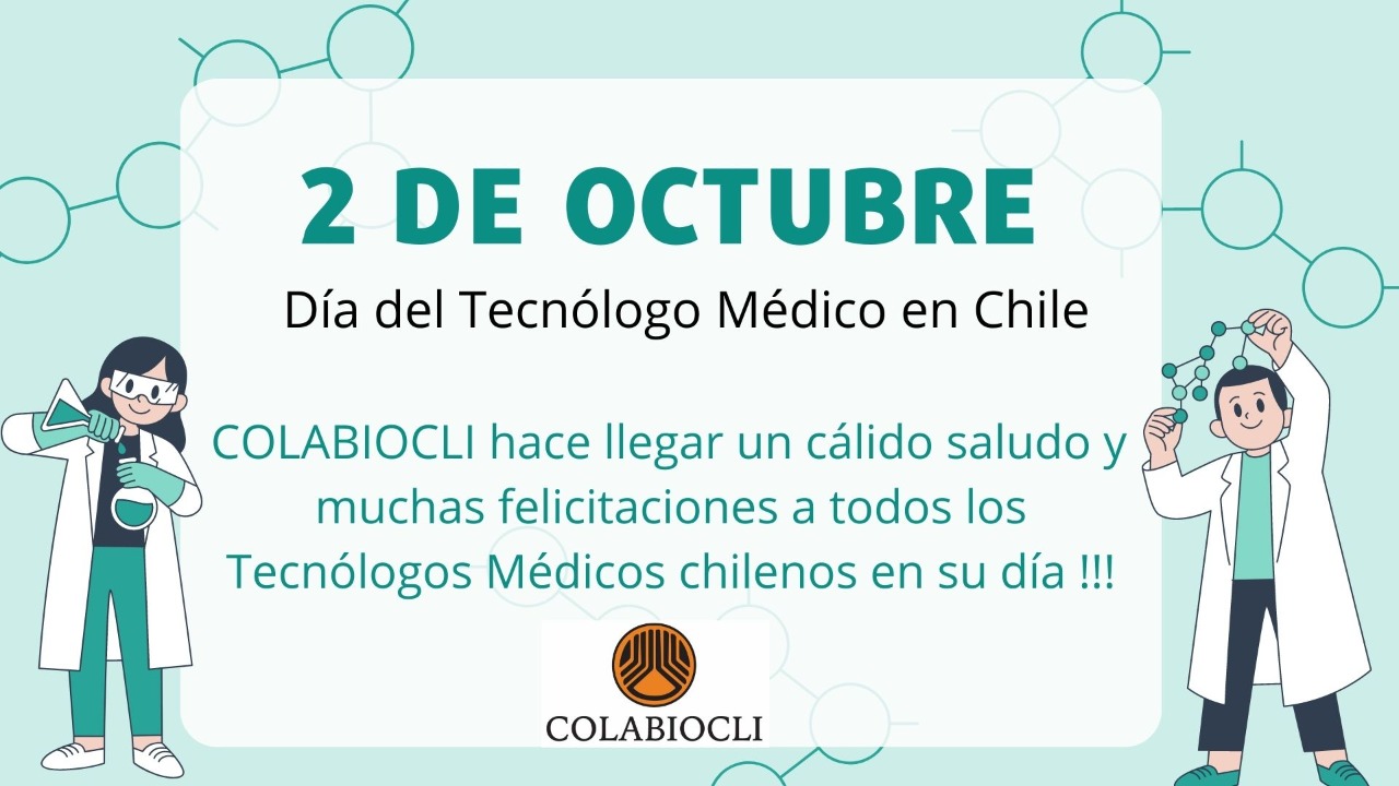 El 2 de octubre se celebra el Día del Tecnólogo Médico en Chile, como Confederación Latinoamericana de Bioquímica ClÍnica queremos hacer llegar nuestras cordiales felicitaciones a todos los profesionales chilenos que desempeñan una importante labor en el laboratorio clínico como parte imprescindible del equipo multidisciplinario de salud en beneficio de la comunidad.